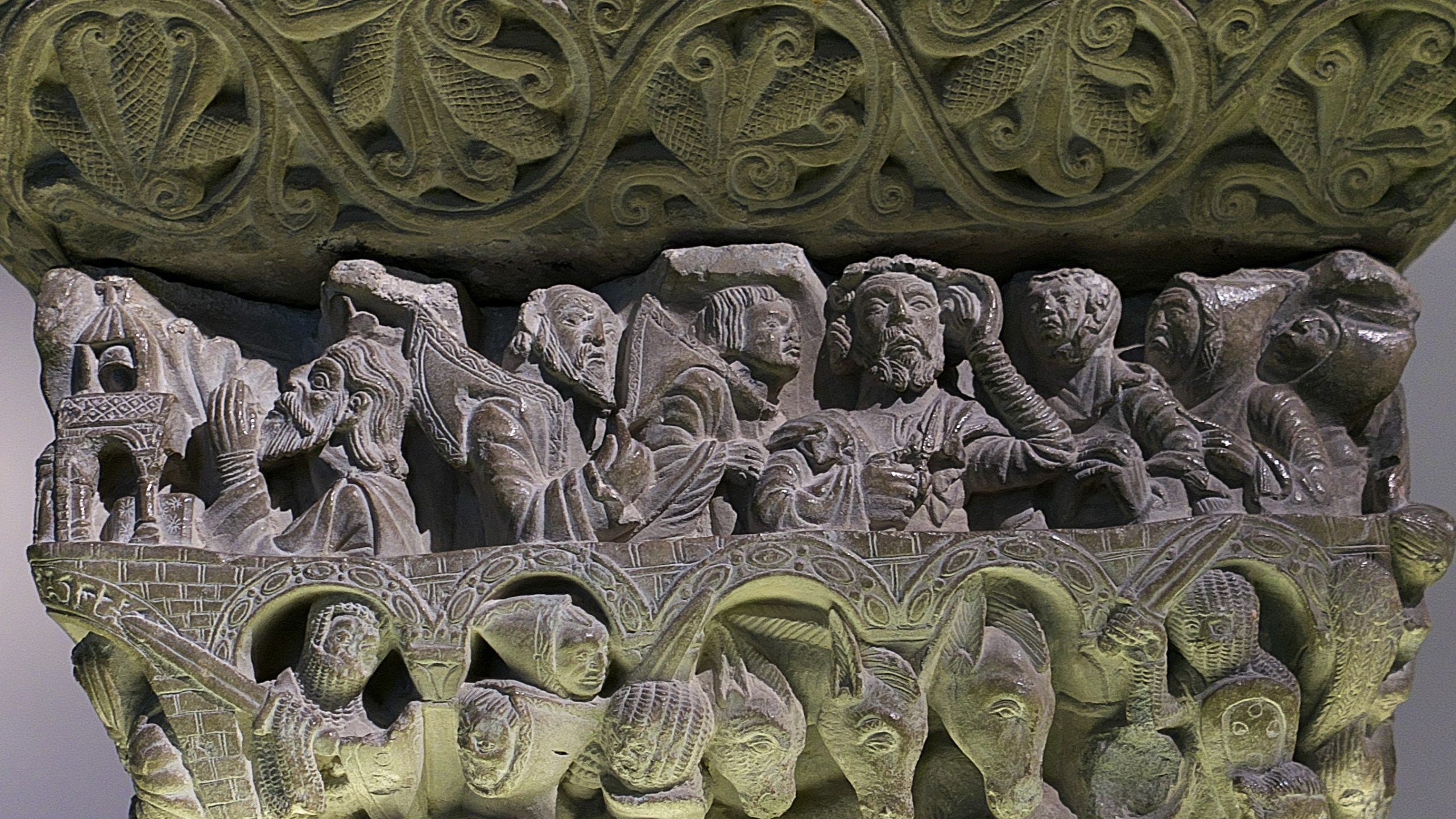 Image credit: “Navarre Museum. Master of the cloister of the cathedral of Pamplona. Historiated capital on the Story of Job. From the cloister of the Romanesque cathedral of Pamplona (ca. 1130-1140).” Photo by Jl FilpoC, 2019.