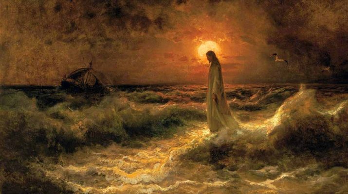 “early in the morning he came walking toward them on the sea”