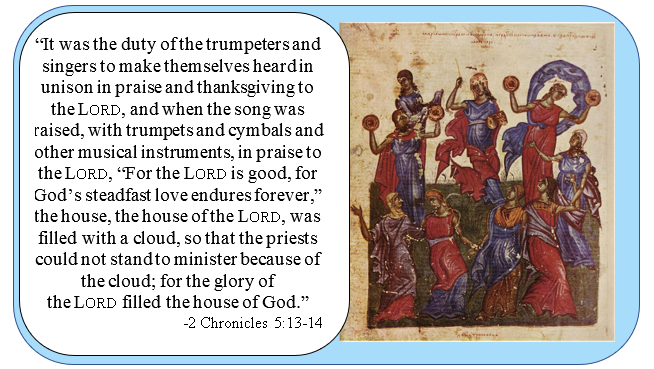 Merry Christmas! You might be wondering why we’re looking at a scripture passage from such a different time and place on Christmas Day. This passage comes from a celebration after the Second Temple was built. These people had been in war and exile, suffering, starving, dying. Finally, not only are they home, but they can fully worship God in their own land! Look at all the words of praise and excitement and joy in this passage! The glory of the Lord fills up that holy place so much that the priests couldn’t keep doing their duties! When God comes into your house, everything else stops. Some can dance, make music, or sing – others just marvel. This word “glory” comes from a root that means “heavy,” “weighty” or “numerous.” We praise God’s ceaseless, unfailing love that catches us up in unimaginable grace. Then the “muchness” of God fills the air, the gravity of the Christ child, the abundance of the Spirit. Amidst all the goings on of the day, look for that weight and that love.