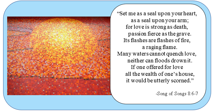 “Strong” is probably not the first word that comes to mind when we think of love Many would tell us that loving makes us weak. But this word for “strong” means powerful, fierce, mighty, even brazen! For love God made the world. For love Christ was born into it to conquer sin and death. For love the Spirit stirs us on to bold acts of righteousness and compassion. The body of Christ is a body of love – seemingly conquered by the anger and hatred of the world, yet unconquerable in grace and glory. The love that we partake in as followers of Christ is unquenchable, unassailable, undeniable. This is our strength and this is our heart.