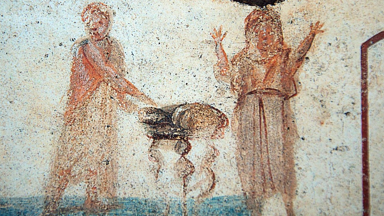 Image credit: “Painting in the Early-Christian catacomb of San Callisto (Saint Calixte Catacomb) ,” Rome, 3rd century.