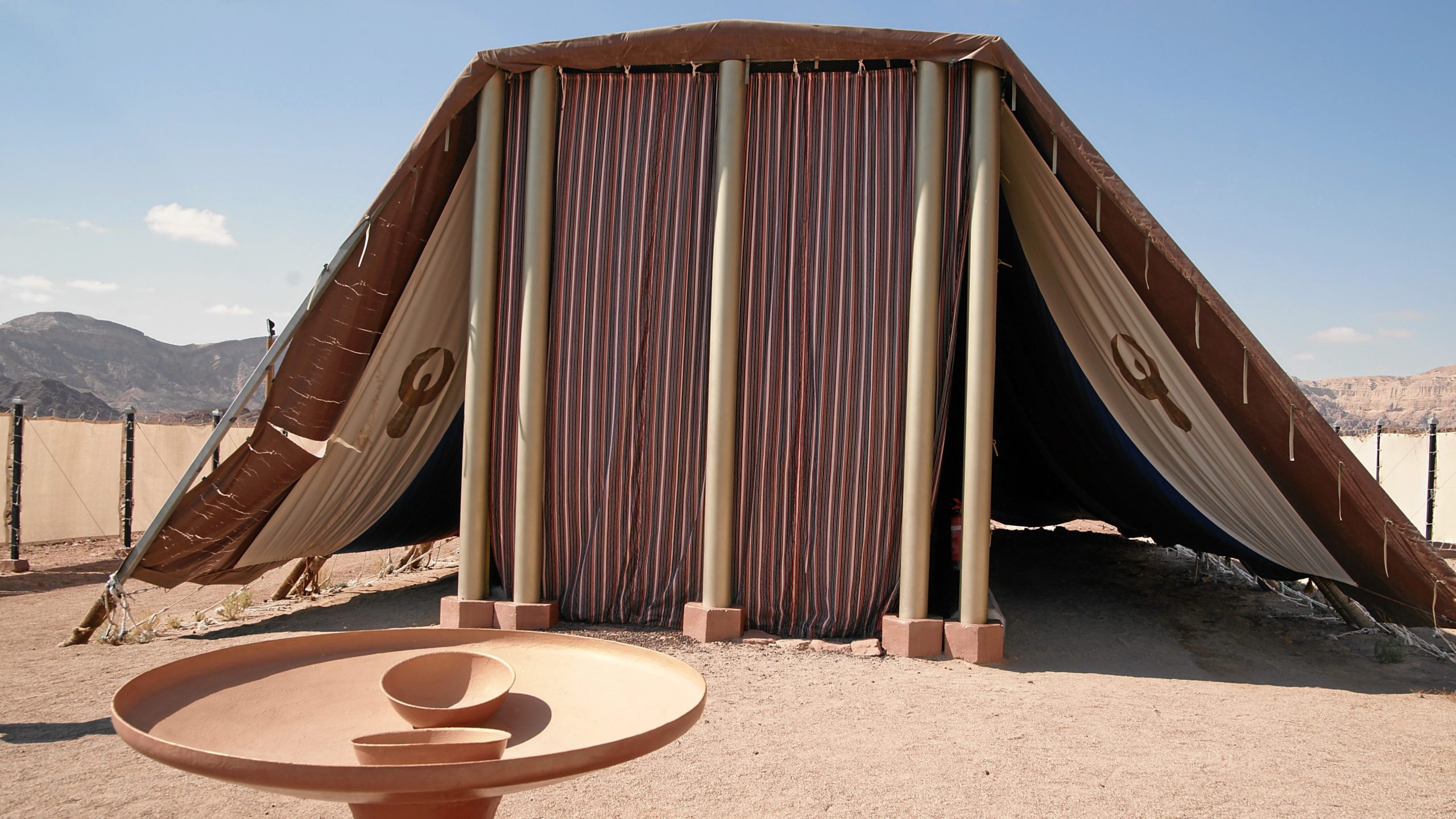 Image credit: “Timna Park Tabernacle Courtyard” by Mboesch, 2016.